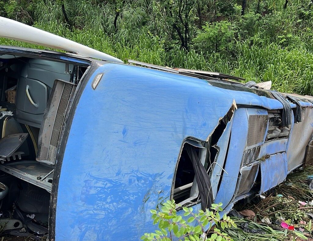 Mulher morre após ônibus com mais de 40 passageiros tombar na BR-153 no Tocantins