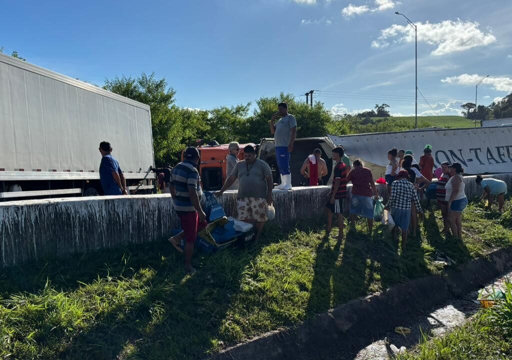 Um caminhão carregado com pescados tombou neste sábado (11) e interditou as duas faixas da BR-101, no sentido Natal–João Pessoa. O acidente aconteceu no km 75 da rodovia, nas proximidades do distrito de Bebelândia, em Santa Rita, na Grande João Pessoa.