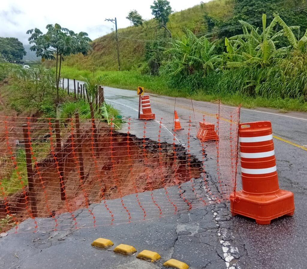 Parte do asfalto cedeu e uma cratera foi aberta na RJ-155, em Rio Claro (RJ). Segundo a prefeitura, o tráfego está fluindo em meia pista na altura do km 44, próximo a entrada da cidade. A informação foi confirmada na sexta-feira (24).