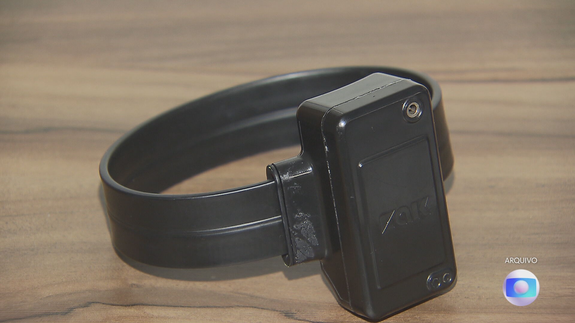 Tornozeleira eletrônica em cima de uma mesa