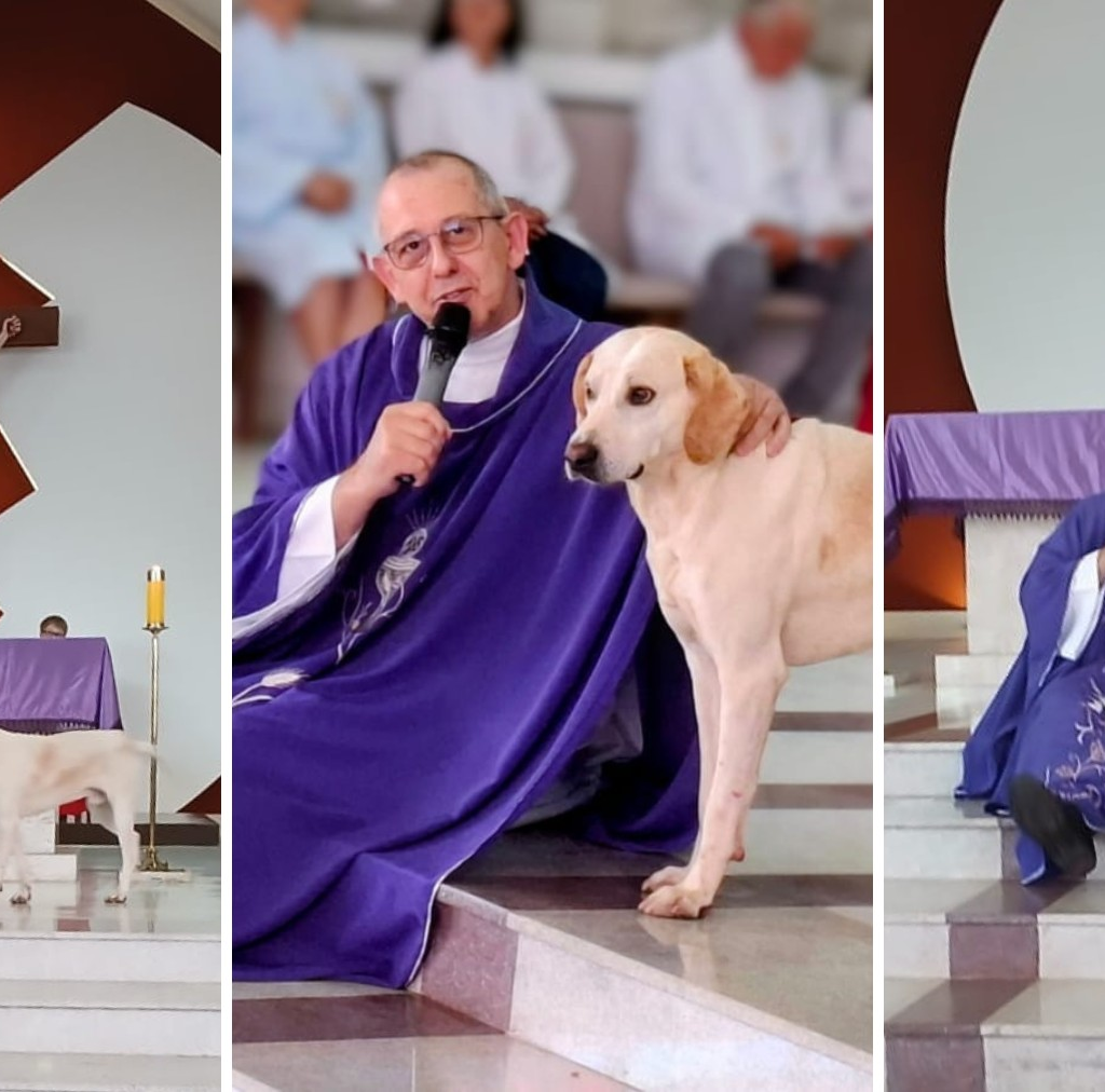 Cachorro começa a frequentar missas e conquista padre, no Paraná