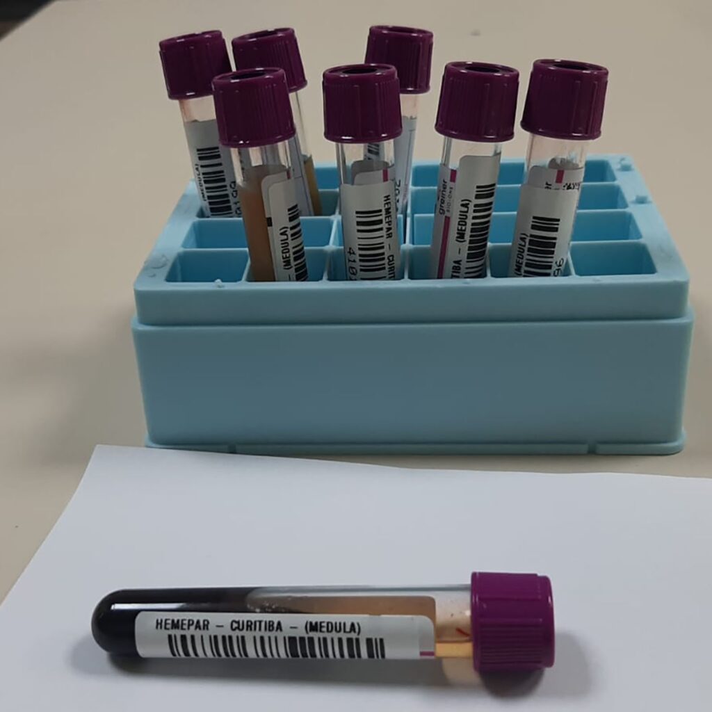 Medula óssea coletadas em tubos, em imagem de arquivo
