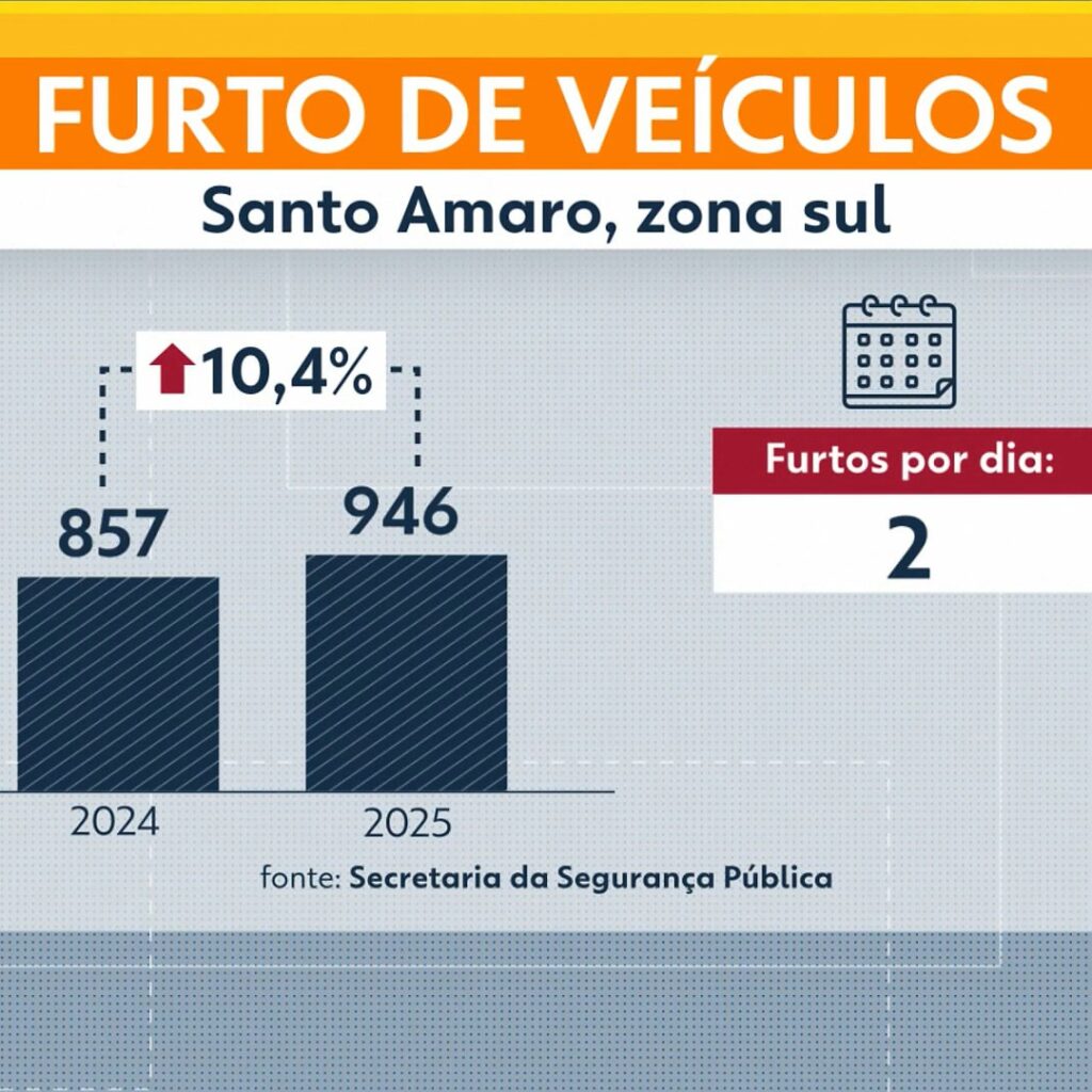 Dados da Secretaria da Segurança Pública (SSP) mostram que, em 2024, o bairro registrou 857 furtos de veículos. Em 2025, o número subiu para 946 ocorrências – um aumento de 10% em relação ao ano anterior.