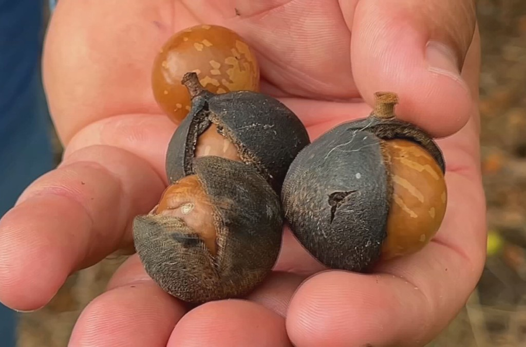 Após sair do campo, a macadâmia segue para a indústria, onde passa por diversas etapas. O processo inclui a quebra e a separação da casca, seleção, limpeza, torra, pesagem e embalagem, garantindo qualidade e sabor até o produto final, pronto para o consumo.
