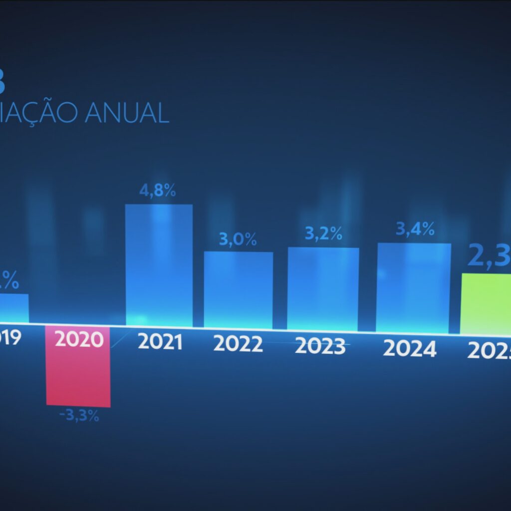 O campo produziu mais e melhor. O IBGE destaca os ganhos de produtividade, inclusive na pecuária, impulsionando o crescimento expressivo de 11,7%. A agropecuária foi o segundo setor que mais impactou o PIB de 2025, atrás apenas de serviços. O setor que mais emprega e mais movimenta riquezas, no entanto, desacelerou. Depois de uma alta de quase 4% em 2024, o principal motor da economia cresceu 1,8% em 2025. Apesar da perda de ritmo, todas as atividades de serviços tiveram desempenho positivo – destaque para informação e comunicação.