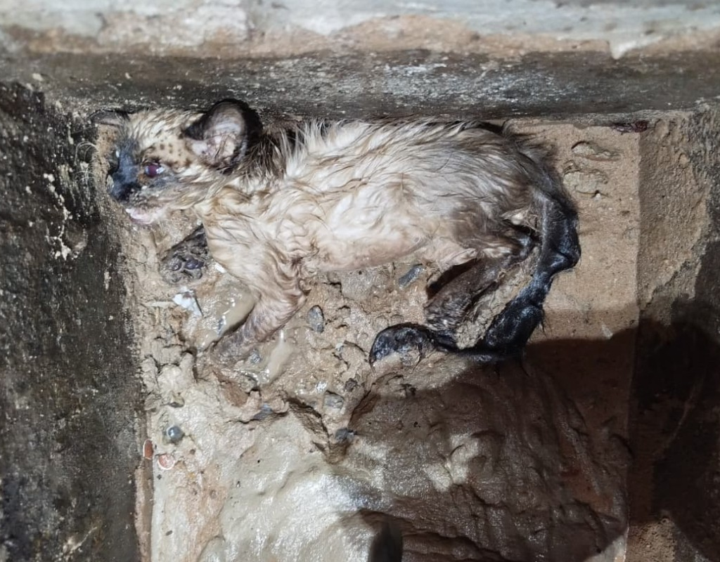 Filhote de gato é resgatado após ficar grudado em concreto em MT