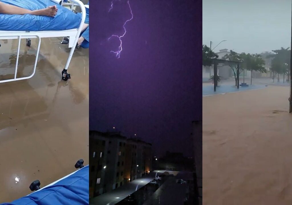 Vídeos do Hospital Municipal Luís Eduardo Magalhães mostram que a água se acumulou no chão, deixando pacientes “ilhados”.