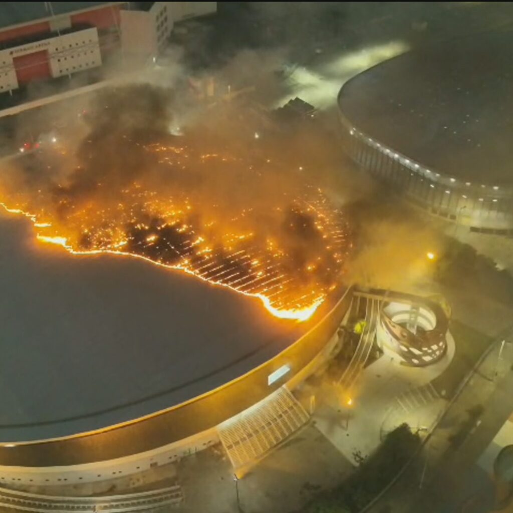 Fogo destrói telhado do Velódromo do Parque Olímpico; estrutura não foi danificada, e ninguém se feriu