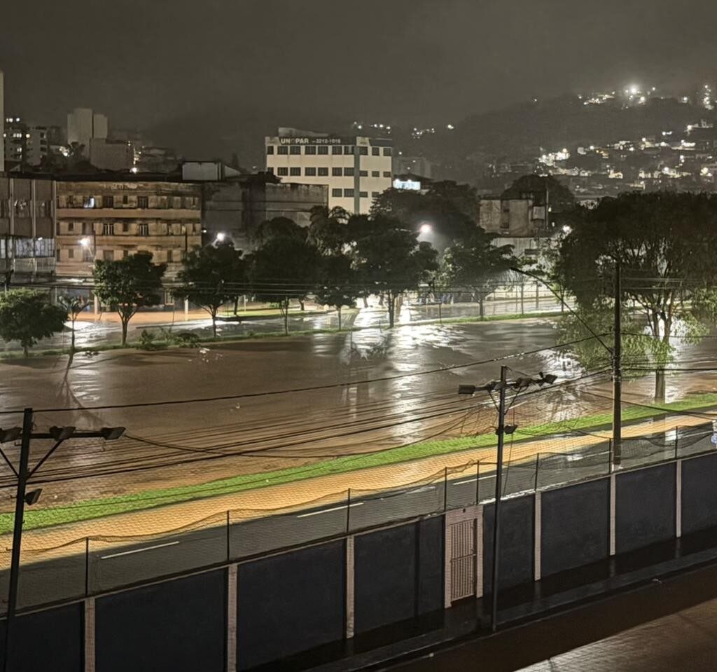 Conforme a Prefeitura, havia registro de transbordamento do Rio Paraibuna, no bairro Industrial, e também reporte de transbordamento na Avenida Brasil, nas proximidades do Corpo de Bombeiros.