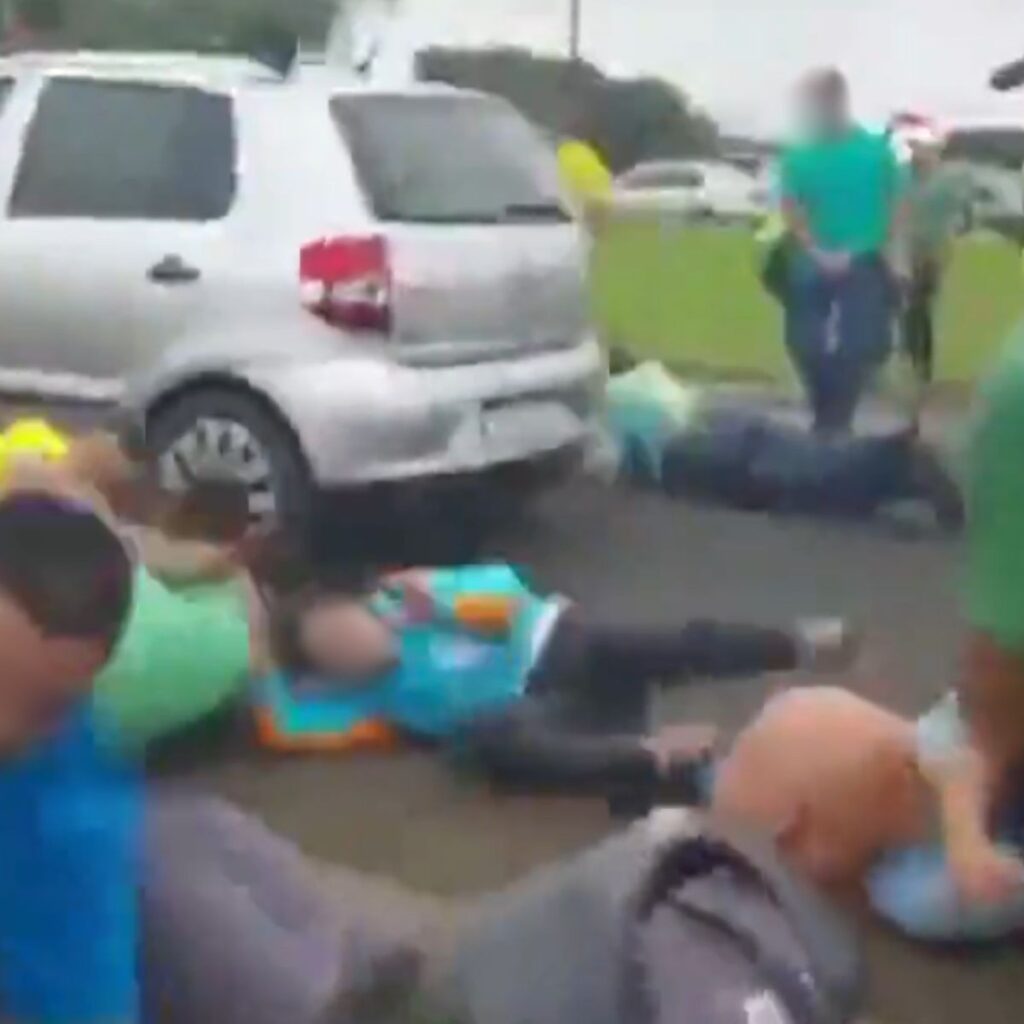Logo após o atropelamento, os bolsonaristas tentaram agredir o motorista que atropelou o grupo, mas foram impedidos por equipes da corporação. Muitas pessoas cercaram e danificaram o veículo.