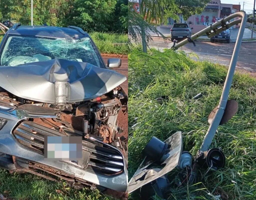 Um motorista, ainda não identificado, perdeu o controle da direção e colidiu a caminhonete que conduzia contra um semáforo no cruzamento das ruas Ezequiel Ferreira Lima e Avenida Vereador Thyrson de Almeida, na esquina do Parque Ayrton Senna, no bairro Aero Rancho, em Campo Grande, na manhã deste domingo (5).