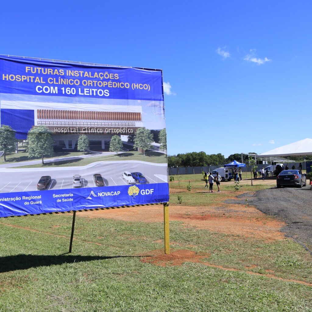 Hospital Ortopédico do Guará: apenas 2,19% do projeto foi concluído; o governo aguarda a documentação técnica com o cronograma atualizado. Valor do contrato: R$ 174 milhões.