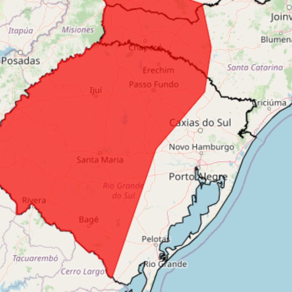 Com a atmosfera mais seca, a chance de chuva é baixa, embora possa ocorrer precipitação fraca e isolada no litoral e em áreas próximas à Serra. À tarde, as temperaturas ficam mais elevadas em relação aos dias anteriores, trazendo sensação de calor moderado, especialmente na Fronteira Oeste, Missões, Noroeste e Centro do estado.