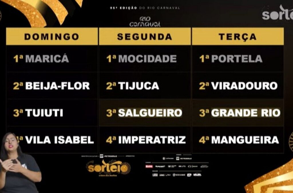 Veja abaixo como ficou a divisão das 12 escolas nas três noites na Sapucaí.