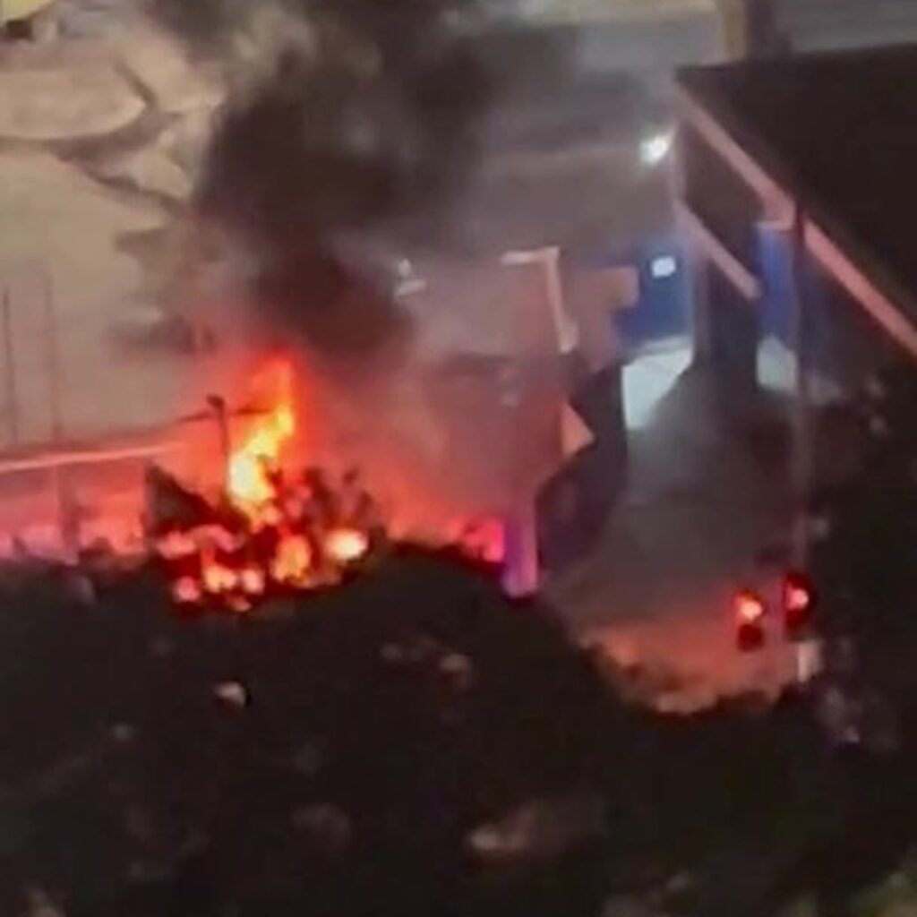 Perto de um batalhão da Polícia Militar e das obras do metrô, o carro suspeito bateu em um gradil e pegou fogo.