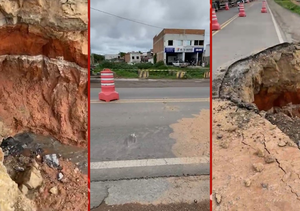 Cratera se abre na BR-116 após chuvas
