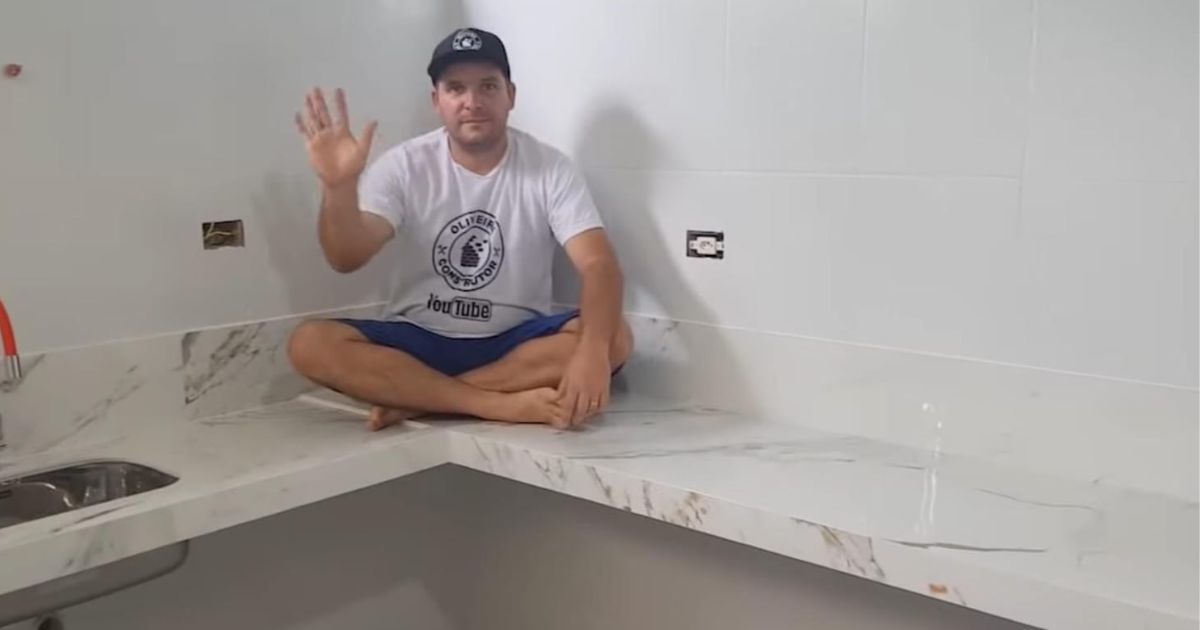 ‘Qualquer um faz’; pedreiro constrói bancada revestida em porcelanato do zero