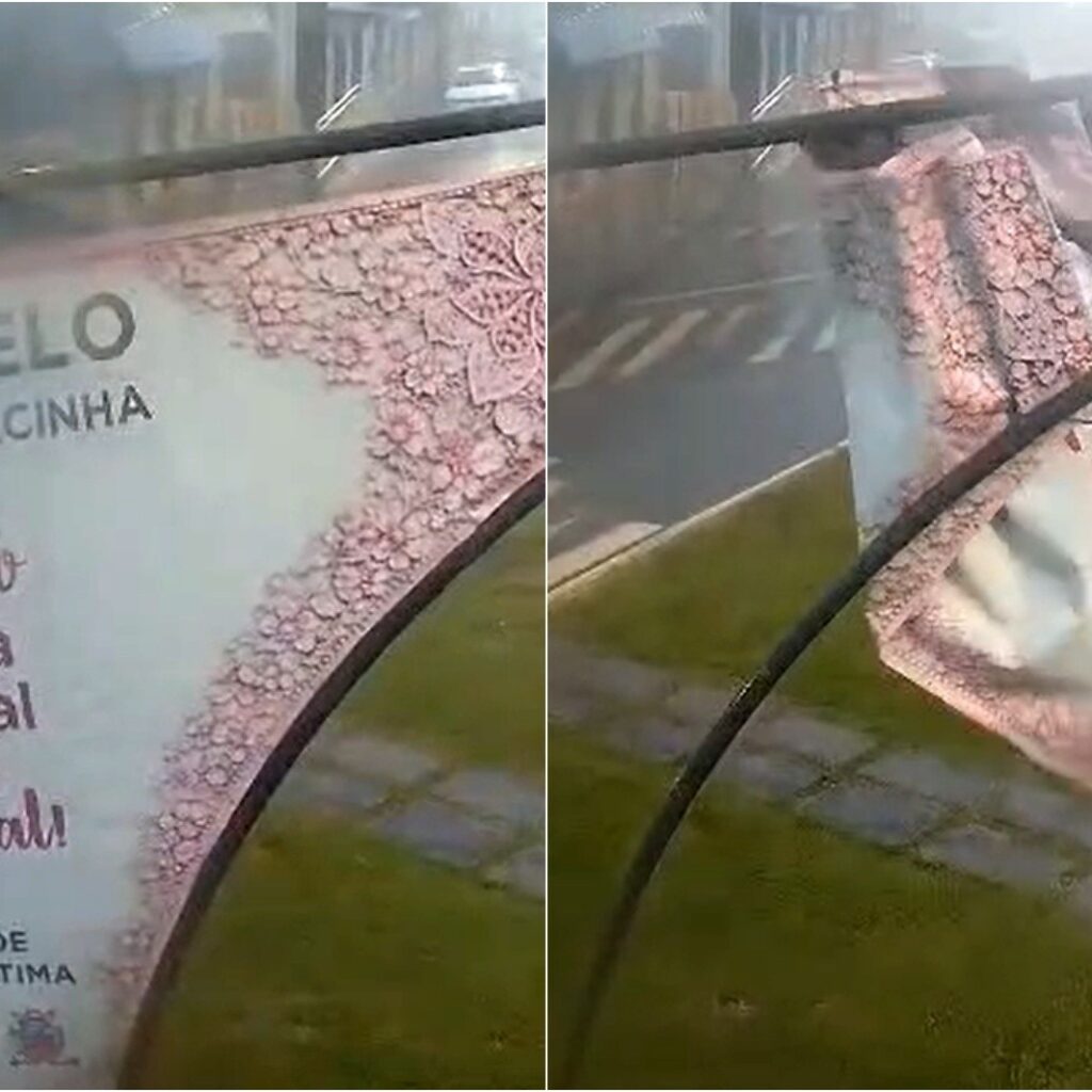 Além do grande volume de água, os ventos fortes causaram danos em diferentes pontos da cidade. Um dos principais símbolos do município, o monumento da “calcinha” gigante, localizado na Avenida Francisco Wenceslau dos Anjos, na região central, foi arrancado pela ventania. Imagens de câmeras de segurança registraram o momento exato em que a estrutura é levada pela força do vento.