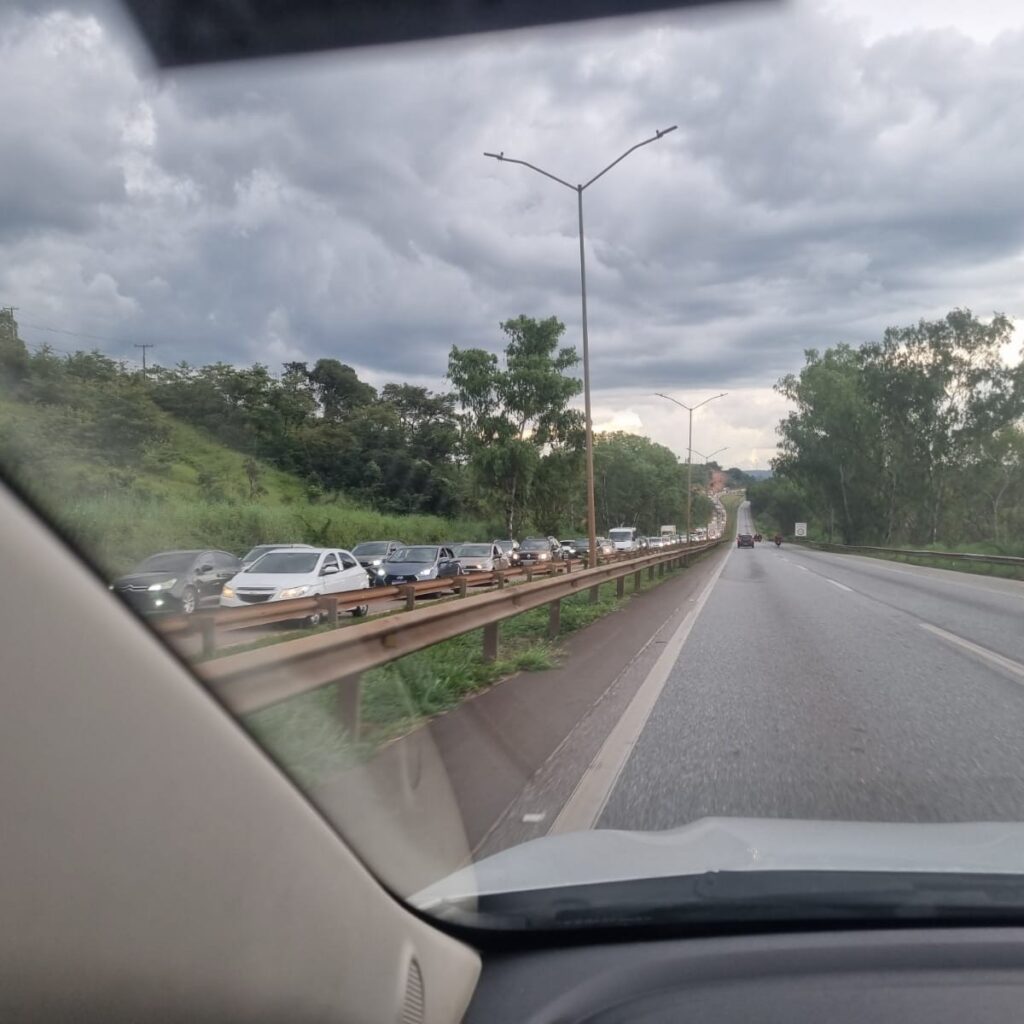 Rodovia congestionada na chegada de Belo Horizonte