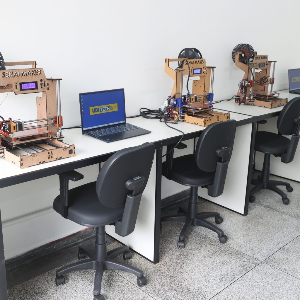 O material também será fornecido aos alunos. Ao todo, o local conta com 40 notebooks, uma impressora, três impressoras 3D, três celulares, três óculos de realidade virtual, um kit de equipamento industrial, dois braços robóticos, kits de robô e máquina de corte a laser.