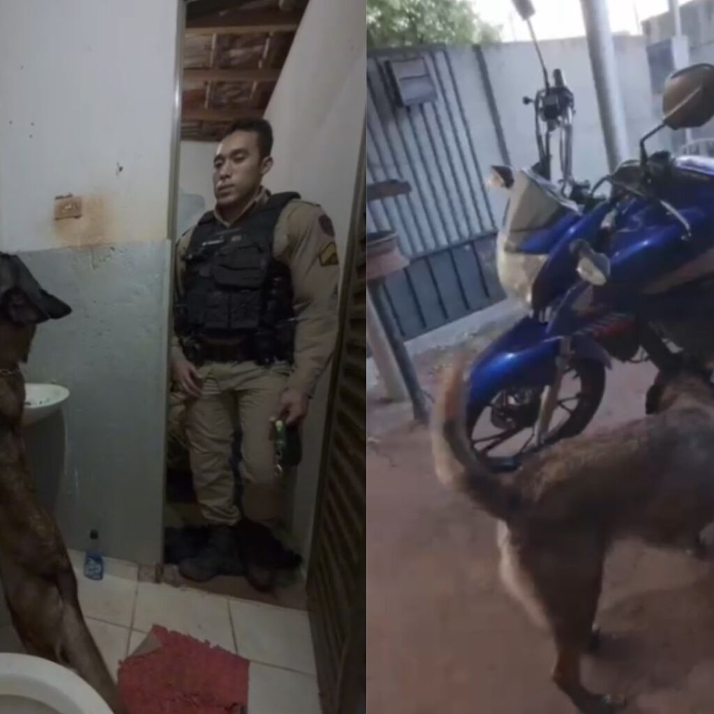 Imagens divulgadas pela Polícia Militar (PM) mostram o momento em que os cães farejadores localizaram drogas escondidas atrás de um espelho no banheiro de uma casa e na carenagem de uma moto usada por traficantes alvos da operação “Alvorada” (assista ao vídeo acima). Sete pessoas foram presas na quarta-feira (1º) durante a ação em Campina Verde, no Triângulo Mineiro.