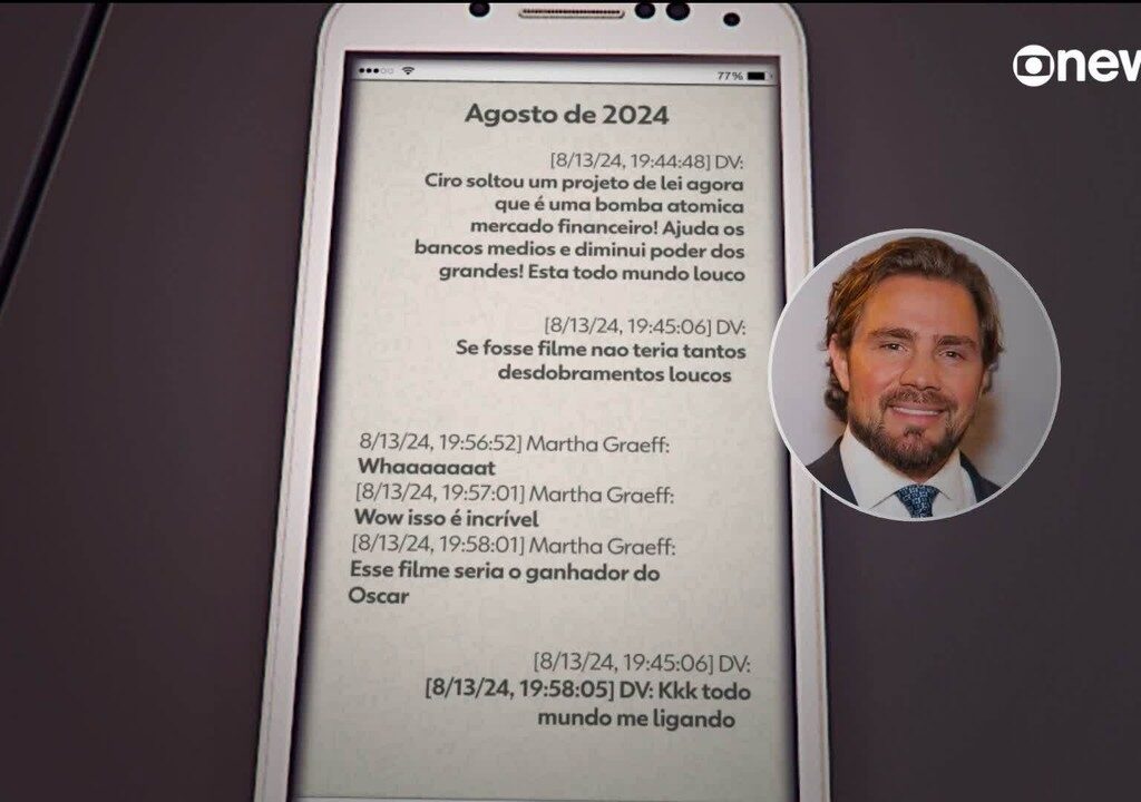 O material veio à tona na quarta-feira (4), e o g1 teve acesso a ele. São conversas de Vorcaro com a namorada, a modelo Martha Graeff, em que o dono do Banco Master descreve a rotina e menciona diálogos, reuniões e jantares com autoridades, políticos e personalidades. O período das mensagens vai de 10 de fevereiro de 2024 a 17 de novembro de 2025.