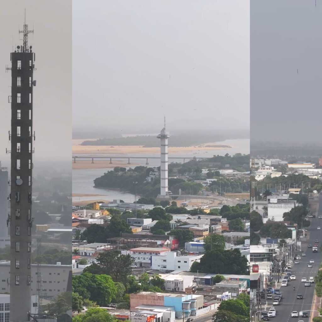 Vídeos feitos por um piloto de drone mostram a fumaça tomando conta de Boa Vista na tarde desta segunda-feira (23). As imagens, gravadas em pontos como o Centro da capital e o Parque do Rio Branco, circularam nas redes sociais e chamaram a atenção pela baixa visibilidade em algumas áreas da cidade.