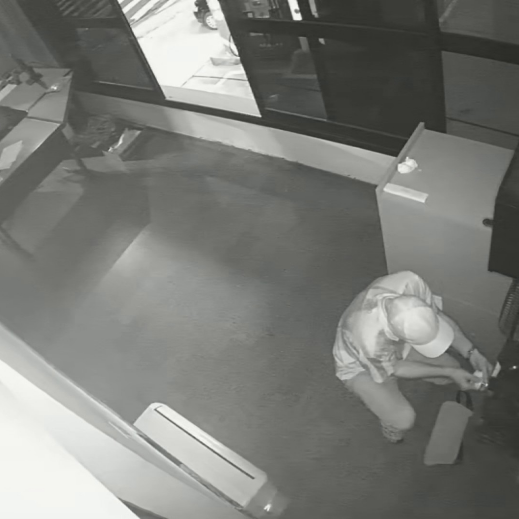 Homem furtando cofre de posto de gasolina em Santa Bábara d’Oeste (SP)