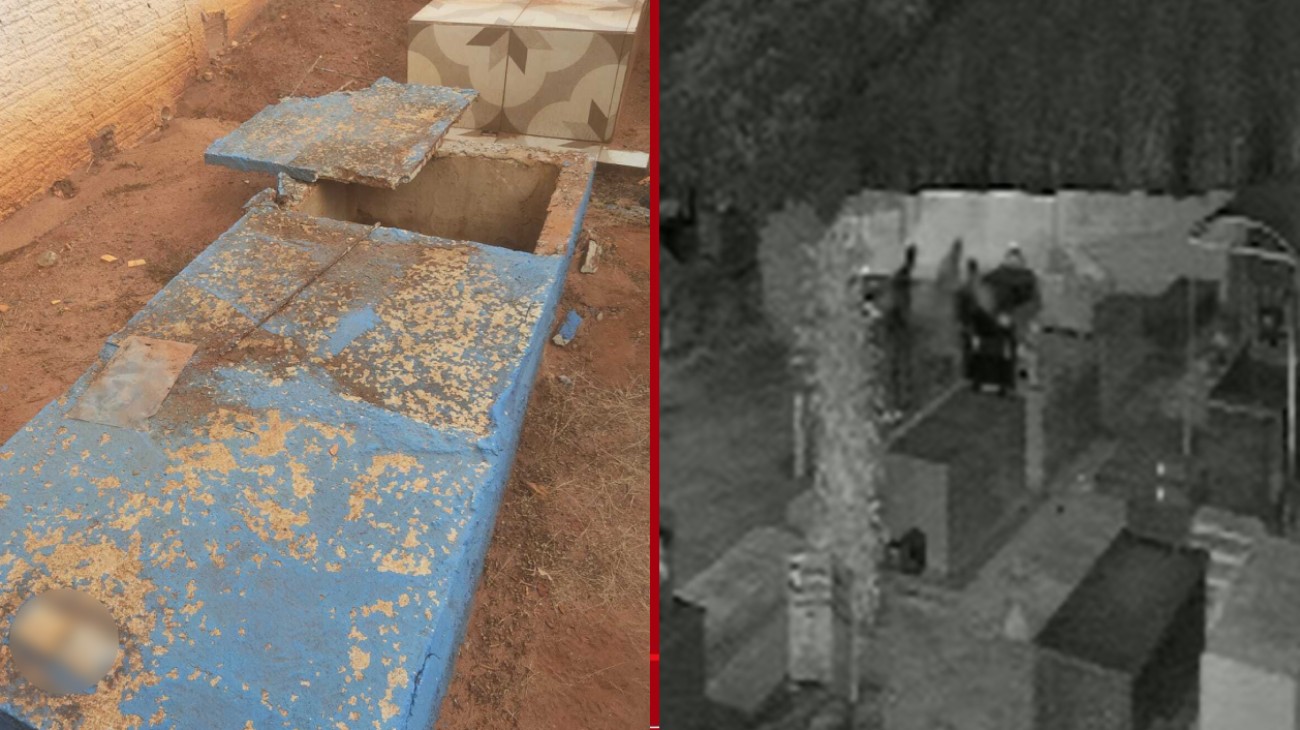 “Equipe adentrou até o cemitério, constatado que os túmulos realmente estavam quebrados. Inclusive um túmulo que a pessoa foi enterrada recentemente, aproximadamente três meses, não teria mais vestígio nenhum do corpo”, disse o soldado Sierra, da PM.