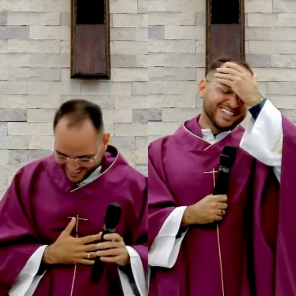 Quando o padre começou a dar o recado, ao final da missa, os fiéis caíram na gargalhada. “O assunto é sério”, disse o padre, tentanto seguir com o comunicado. Depois, ele também acabou se divertindo com o assunto.