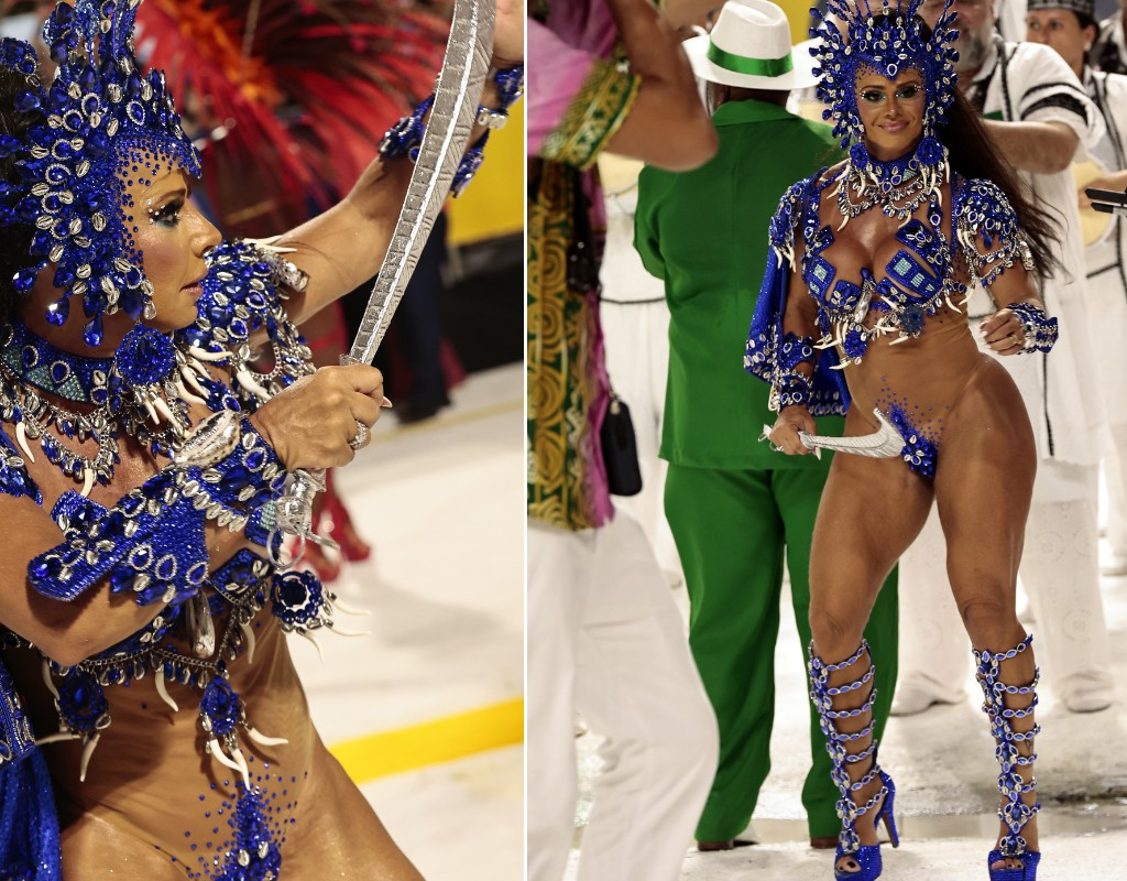 A atriz, de 50 anos, conquistou o título santista com a União Imperial. A rainha de bateria atravessou a Passarela do Samba Dráuzio da Cruz ao lado da musa e ex-‘Loira do Tchan’, Sheila Mello, no último dia 7.