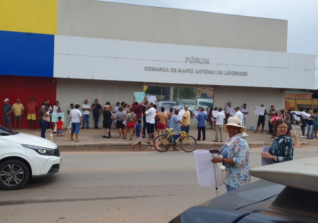 Moradores do Jardim dos Lagos protestam em frente ao Fórum de Santo Antônio do Leverger