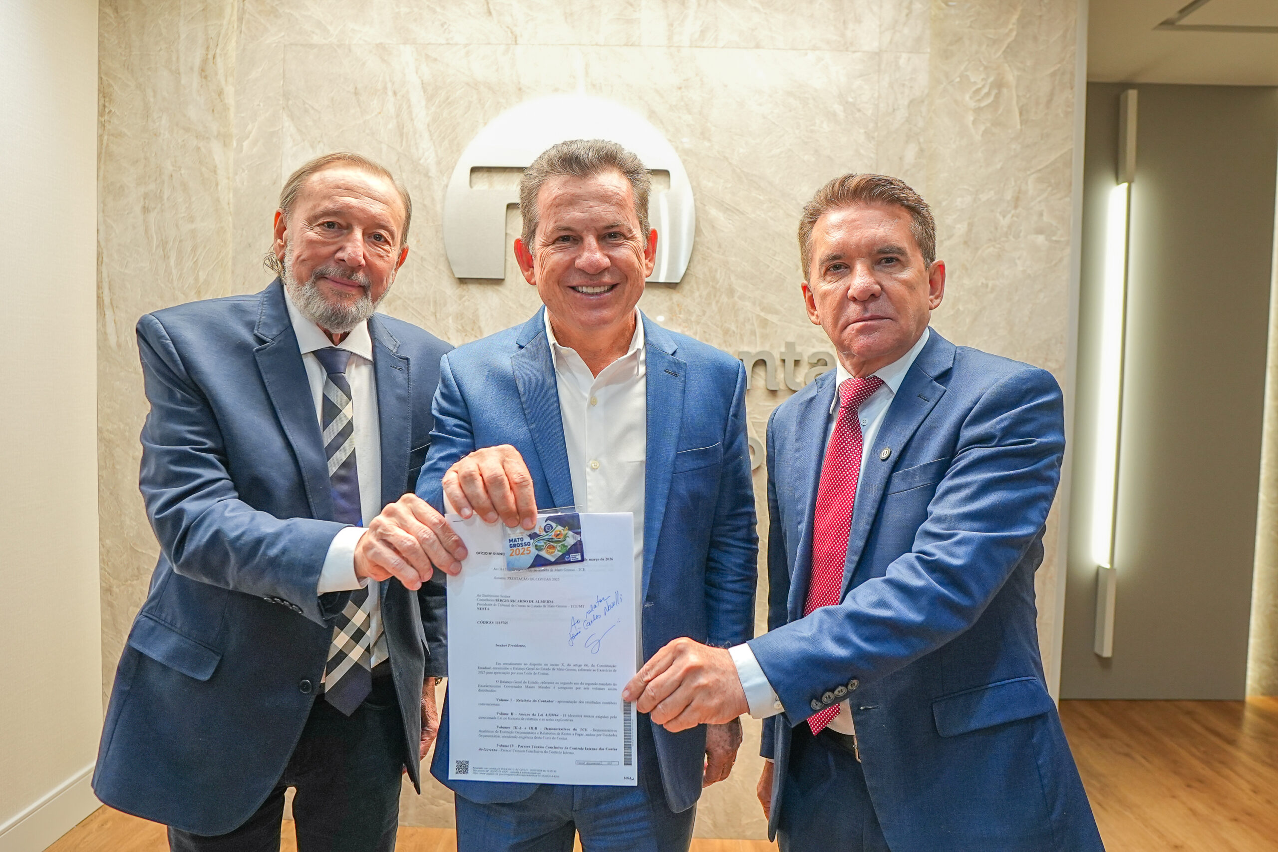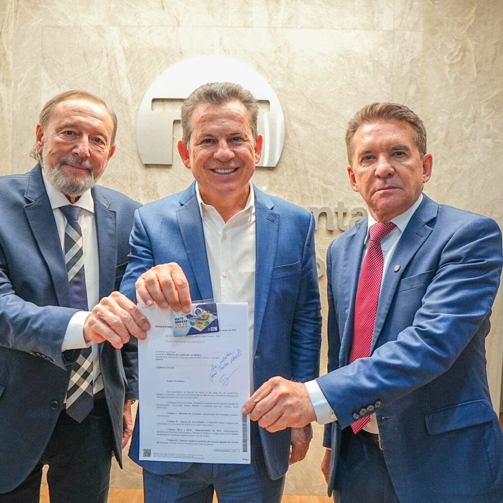 O presidente do Tribunal de Contas de Mato Grosso (TCE-MT), conselheiro Sérgio Ricardo, e o conselheiro-relator José Carlos Novelli, receberam, do governador Mauro Mendes, as contas anuais do Governo do Estado, referentes ao exercício de 2025. Durante a entrega, realizada nesta quarta-feira (18), o presidente chamou a atenção para a evolução dos indicadores fiscais observada nos últimos anos.
