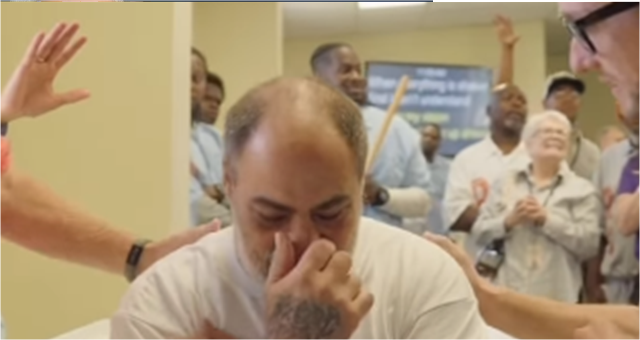 Um detento participante de uma ação evangelística promovida pelo ministério God Behind Bars em uma unidade prisional dos Estados Unidos decidiu entregar sua vida ao Senhor Jesus e foi batizado em uma banheira improvisada dentro da prisão. O momento foi registrado e compartilhado nas redes sociais da organização.
