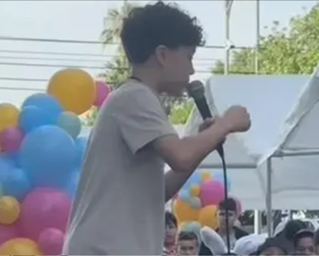 Em sua fala, o menino também abordou situações familiares difíceis. “Não importa se seus pais estão brigando ou de onde você venha. Jesus te amou, Ele te vê”, disse. Ele ainda afirmou que Cristo conhece cada criança individualmente: “Ele sabe todos os dias da sua vida, sabe quantos fios de cabelo tem na cabeça. Jesus te vê e Ele te ama”.