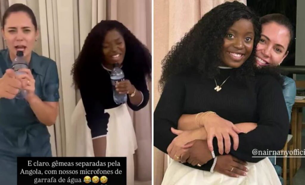 Michelle Bolsonaro aparece ao lado da cantora angolana Nair Nany, a quem se referiu como “preciosa” na publicação. “Gêmeas separadas pela Angola, com nossos microfones de garrafa de água. Deixa a Cassi ver isso”, escreveu, referindo-se a Cassiane, artista que deu voz à canção originalmente em 2001 no álbum “Recompensa”, lançado pela MK Music.