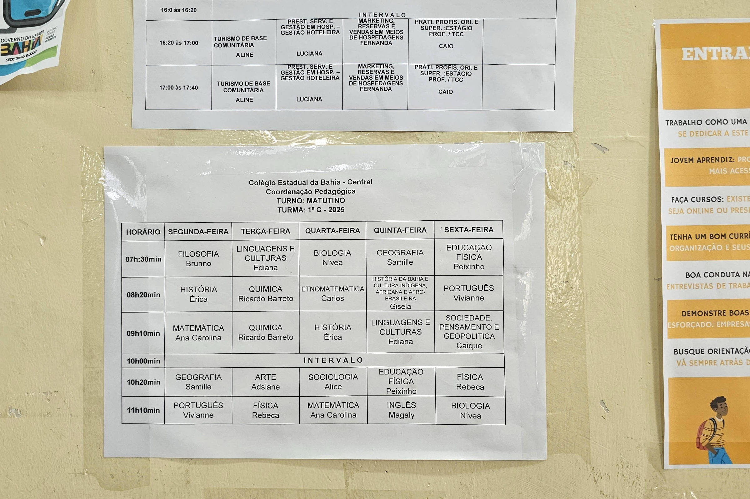 Na Bahia, a situação é diferente, mas o efeito é semelhante. A rede oferece cinco aulas de 50 minutos por dia, quando teriam que ser de 60 minutos. Outro ponto é que a matriz curricular não especifica essa duração de menos de uma hora. Os estudantes, conforme o estudo da USP, concluem o ensino médio com o equivalente a dois anos e meio de curso, ou 100 dias letivos a menos.