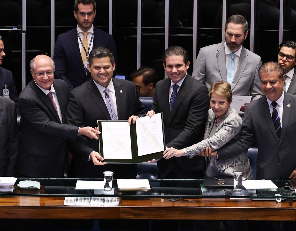 Ao assinar o decreto que ratifica o acordo comercial no Brasil, o presidente do Senado e do Congresso, Davi Alcolumbre (União-AP), apontou que o acordo envia um sinal claro em defesa da paz e da prosperidade no momento em que o mundo sofre com guerras e tensões comerciais.