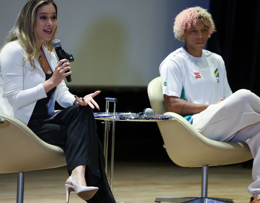A conversa foi mediada pela gerente de comunicação da Confederação Brasileira de Judô (CBJ), Camila Dantas (à esquerda, na foto em destaque).