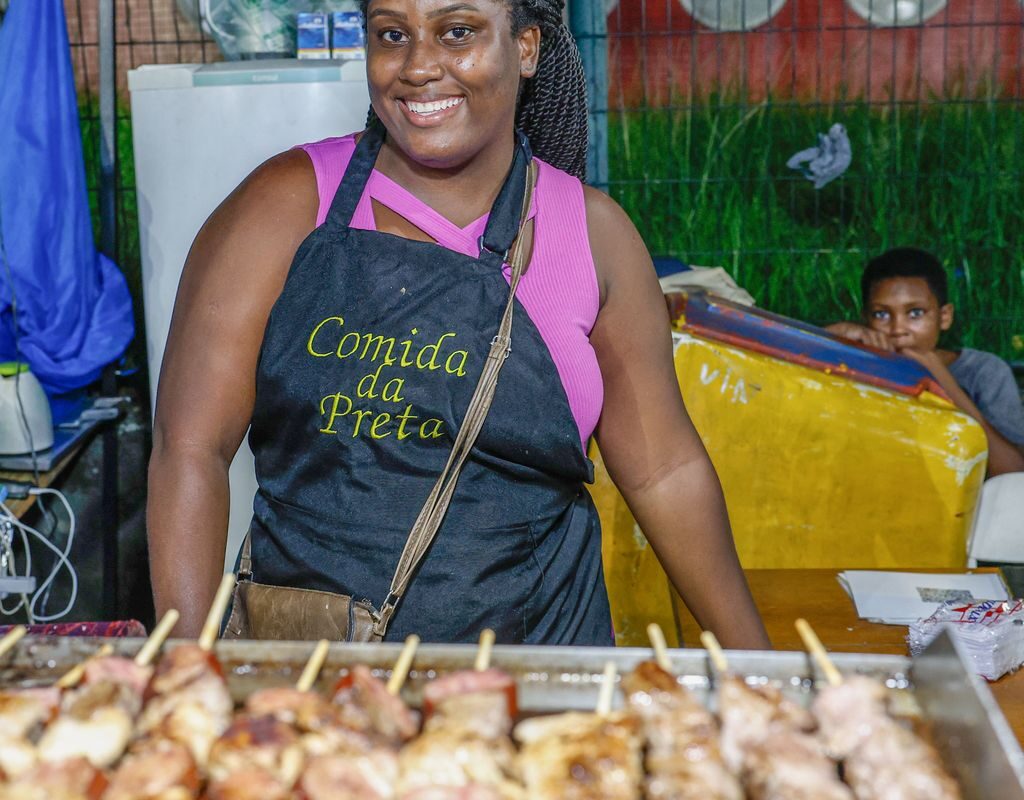 Vendendo churrasquinho quase em frente ao espaço das crianças, Luna Cristina Vitória, de 26 anos, também deixou os dois filhos, de 5 e 9 anos, lá, nos últimos dias. Ela mora na zona oeste e tem uma barraca próxima ao sambódromo. Os pais dela ajudam nas vendas e a solução foi aderir ao projeto.