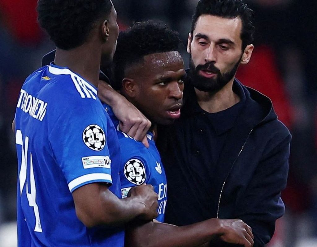 Os jogadores do time português foram tirar satisfações com Vini Jr, que recebeu cartão amarelo do árbitro François Letexier. Quando a confusão parecia encerrada, o brasileiro se dirigiu ao juiz reclamando que foi chamado de “mono”, termo em espanhol para macaco. Ele tinha acabado de discutir com Gianluca Prestianni, do Benfica. As imagens da transmissão de TV mostraram que, em certo momento, o atacante argentino colocou a camisa em direção à boca.