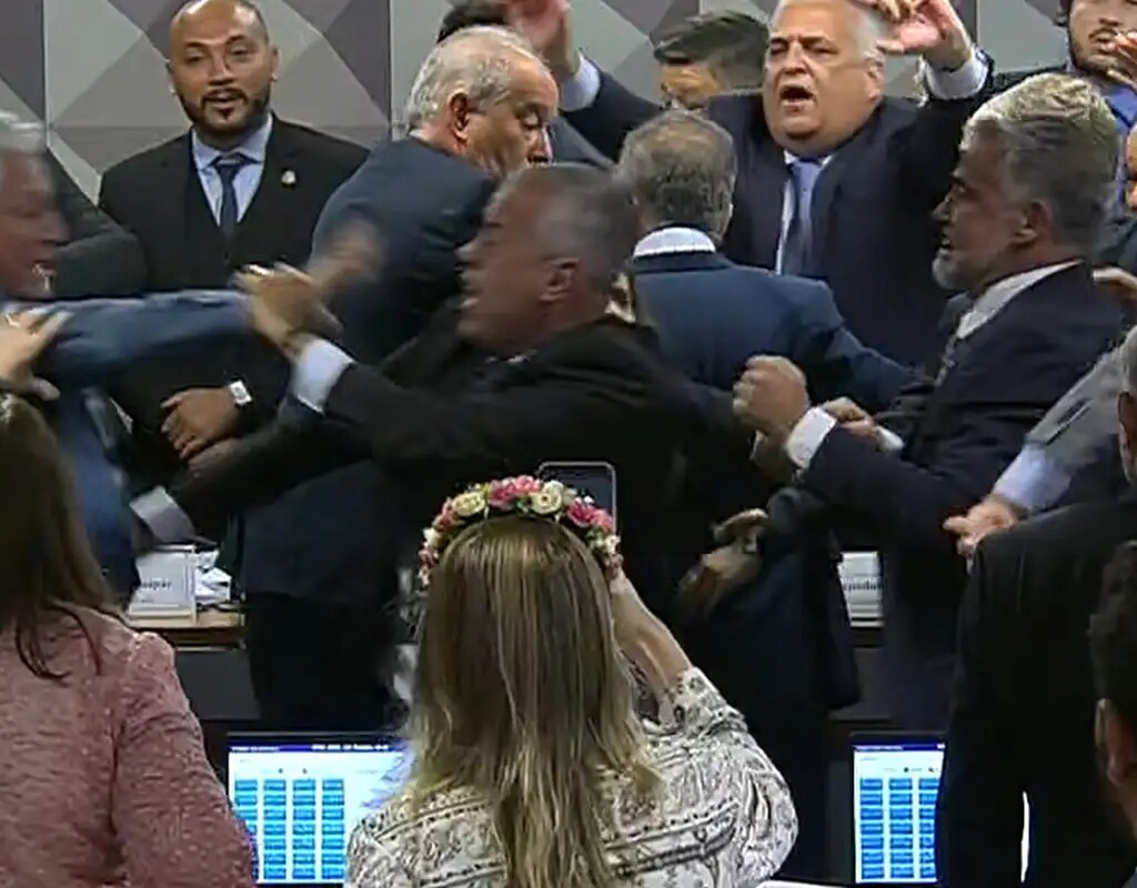 E mais confusão e briga quando o resultado da aprovação foi anunciado. Inclusive com gritos, empurra-empurra e deputado caindo no chão.