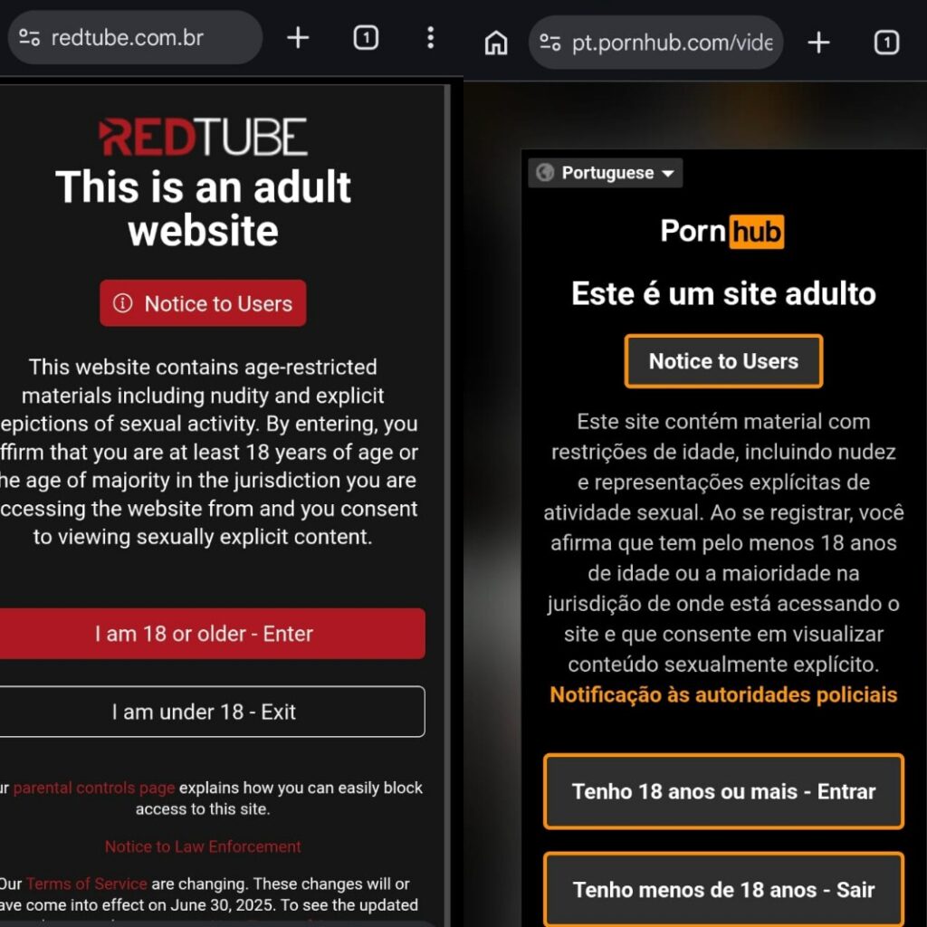 Alguns sites pornográficos como RedTube e Pornhub seguem aceitando apenas a autodeclaração de maioridade nesta terça-feira (17), um dia após entrar em vigor o Estatuto Digital da Criança e do Adolescente (ECA Digital), que proíbe esse tipo de prática.
