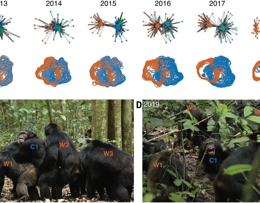 Três anos depois, os animais já estavam separados em dois grupos: o Ocidental e Central – inclusive, territorialmente. Entre 2018 e 2024, a divisão permanente gerou uma série de brigas violentas, sendo registrados sete ataques contra machos adultos e 17 contra filhotes.