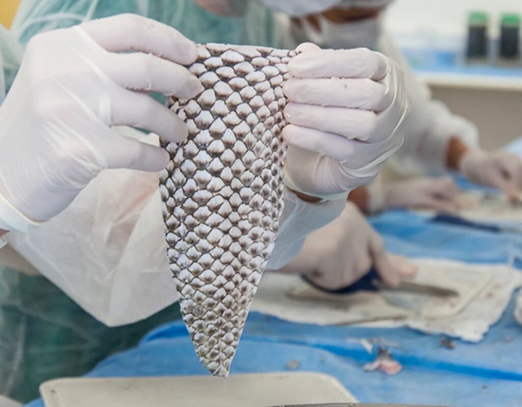 Com grande elasticidade e rica em colágeno do tipo 1, a pele do animal funciona como um curativo biológico para tratar queimaduras de segundo e terceiro grau.