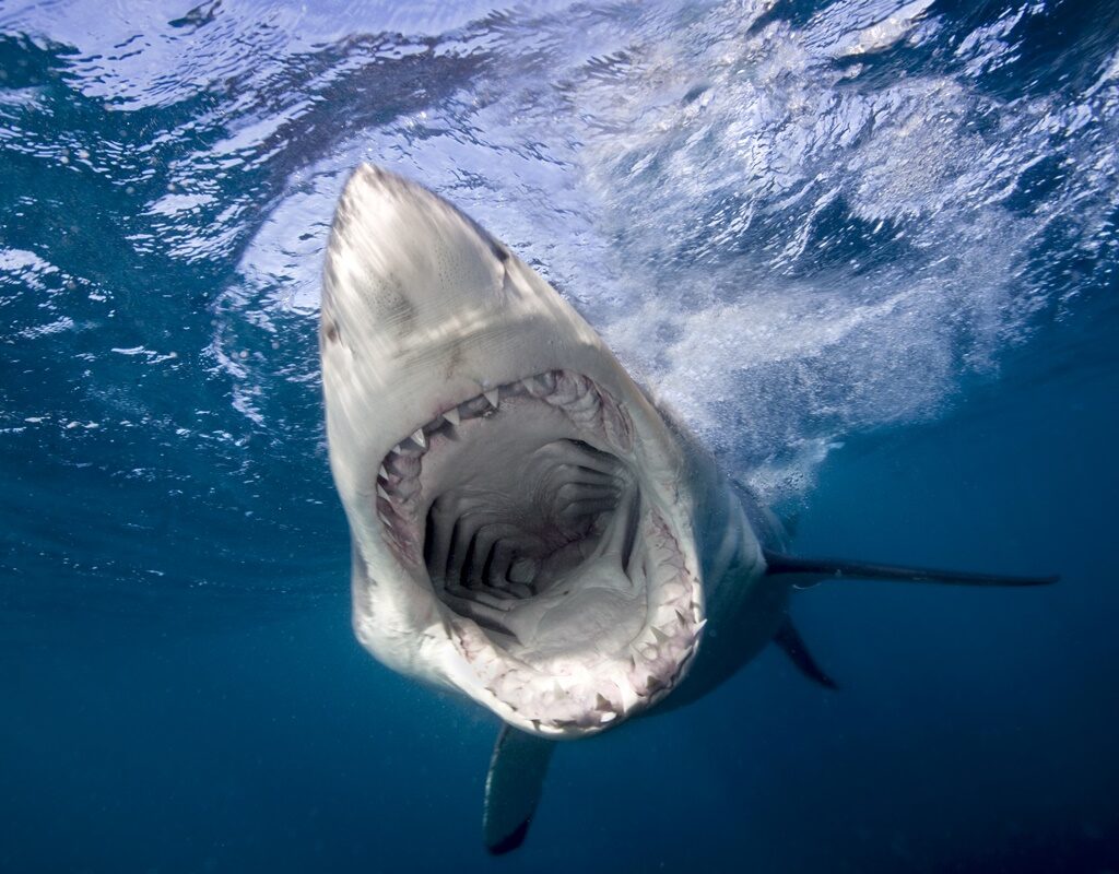 Quando os grandes tubarões-brancos atingem esse tamanho, eles desenvolvem um estilo totalmente novo de dente, capaz de cortar carne densa e até mesmo ossos.