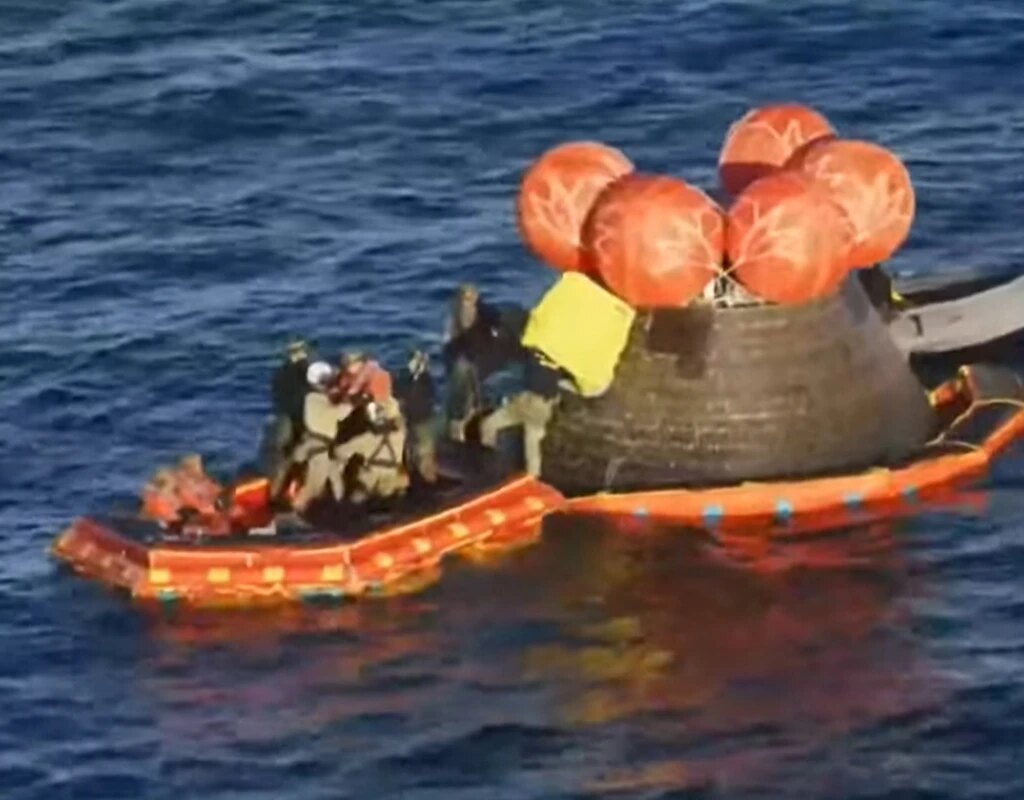 Momento do pouso da cápsula que levou os astronautas ao espaço