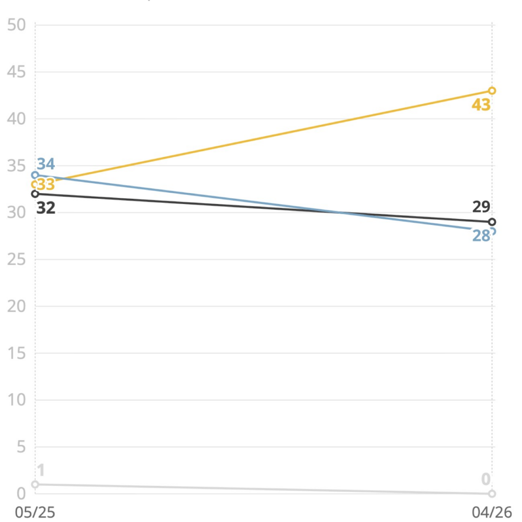 Segundo ele, a vantagem entre os que o consideravam “mais radical” caiu de 10 para 6 pontos.