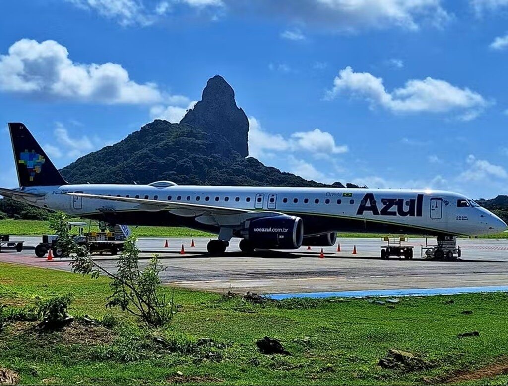Imagem de arquivo mostra avião da Azul no aeroporto de Fernando de Noronha