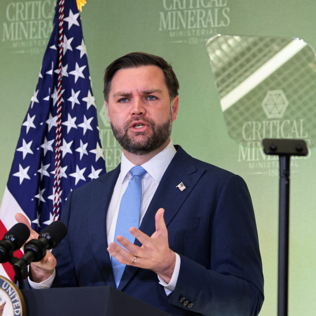 O vice-presidente dos EUA , JD Vance, discursa durante a Conferência Ministerial sobre Minerais Críticos no Departamento de Estado, em 4 de fevereiro de 2026
